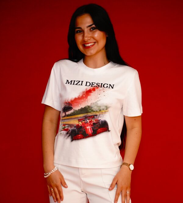 Imagine this: a merch that’s as iconic as you, an F1 woman. One day at the racetrack, the next with a blazer at work, or with jeans at university – looking iconic every day. The perfect fit – not too loose, not too tight – offering comfort, confidence, and elegance. Made from 100% cotton, breathable, and designed to last. Timeless embroidery with pearls and rhinestones that sparkle with every move. Feel the Tifosi atmosphere at Monza and the glamour of Monte Carlo in every stich. Sky as the Italian flag, embroidered Monza podium, and all that by using only colors of the flags – every detail is important for us. Because loving F1 and fashion? That’s iconic.